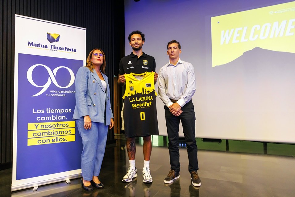 Con Guyonne Miranda, directora de Marketing de la entidad aseguradora, ejerciendo de anfitriona, y con el embajador canarista Nico Richotti en representación del CB Canarias, se presentó a los medios de comunicación a uno de los cinco nuevos jugadores del LA LAGUNA TENERIFE para el ejercicio 24-25.