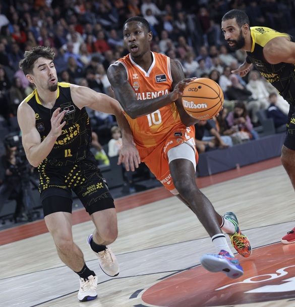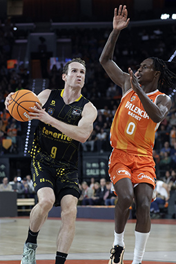 La igualdad era máxima. Los tinerfeños movían con paciencia el balón hasta encontrar buenas opciones de tiro y mantenían un alto porcentaje de acierto desde todas las líneas. Eso les permitía mandar tímidamente en el marcador, mientras el Valencia Basket se mostraba algo más errático en el tiro (25-28 min. 10). Acababa así el primer cuarto.