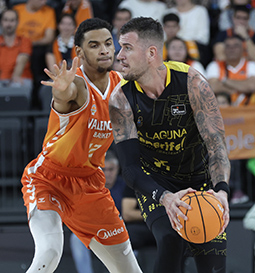 Omari Moore, después de muchos minutos, devolvía el equilibrio al marcador 36-36 aunque La Laguna Tenerife contestaba con un triple. Moore cogía las riendas del equipo y dejaba destellos de su gran calidad y velocidad liderando el ataque local. Montero también daba frescura al juego taronja.