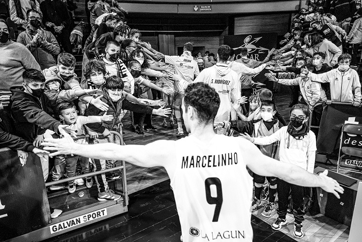 Fue en el descanso del encuentro de la BCL disputado ayer en el Santiago Martín. Los jugadores aurinegros se dirigen al vestuario y se encuentran un especial pasillo de honor.