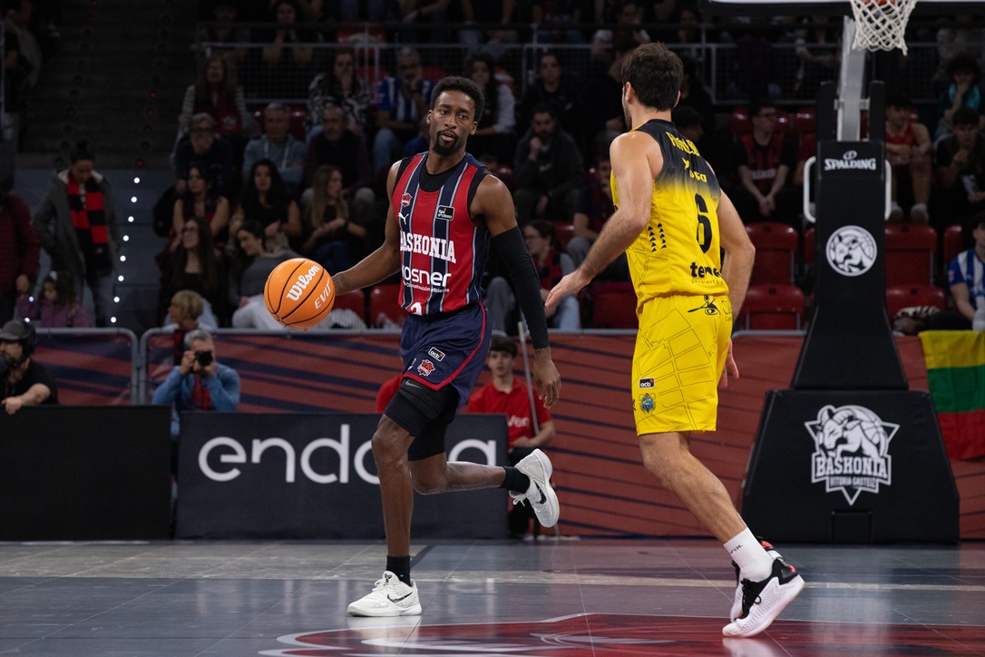 Había dos marchas totalmente opuestas sobre el parqué. Un desordenado Baskonia logró segundas opciones a partir del rebote ofensivo pero no pudo aprovecharlas y el conjunto tinerfeño se fue por delante al descanso con un cómodo 29-40 tras apretar el acelerador en el segundo asalto.