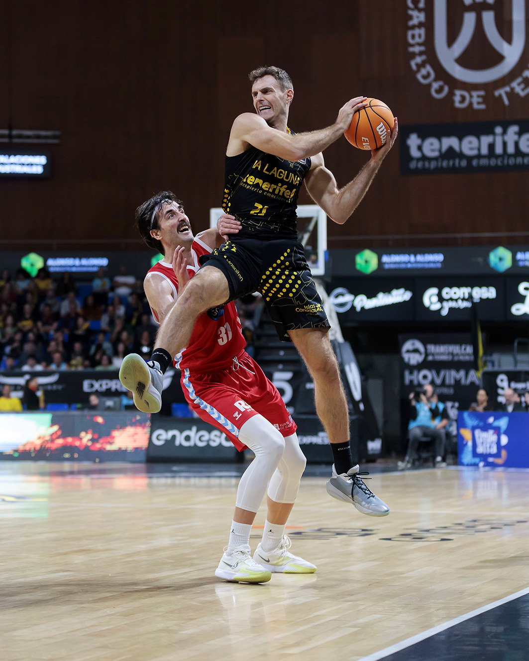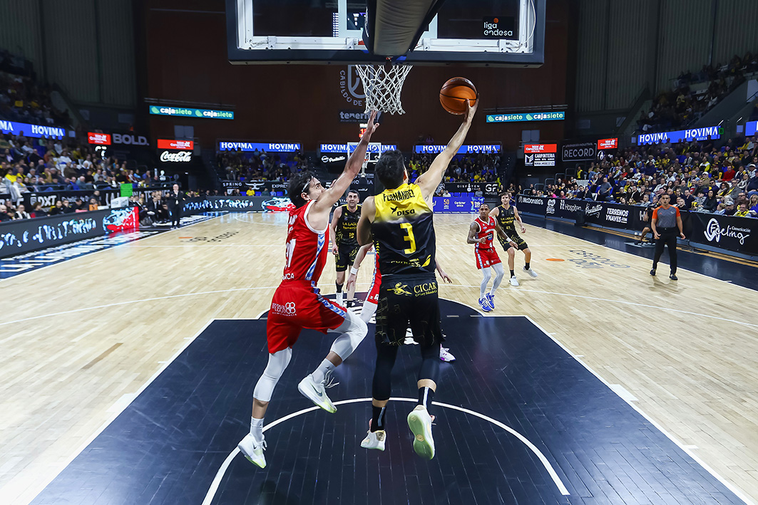 Los pupilos de Txus Vidorreta se veían obligados a remar con suplicio ante un rival que se fue creciendo con el paso de los minutos y que no se descolgaba, hasta que el uruguayo Fitipaldo desatascó a los tinerfeños con un triple y dos tiros libres (84-76 a 1:34 para el final del desenlace).