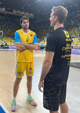 Amistosa charla de concuños. Tobey y Abromaitis están casados con dos hermanas canarias