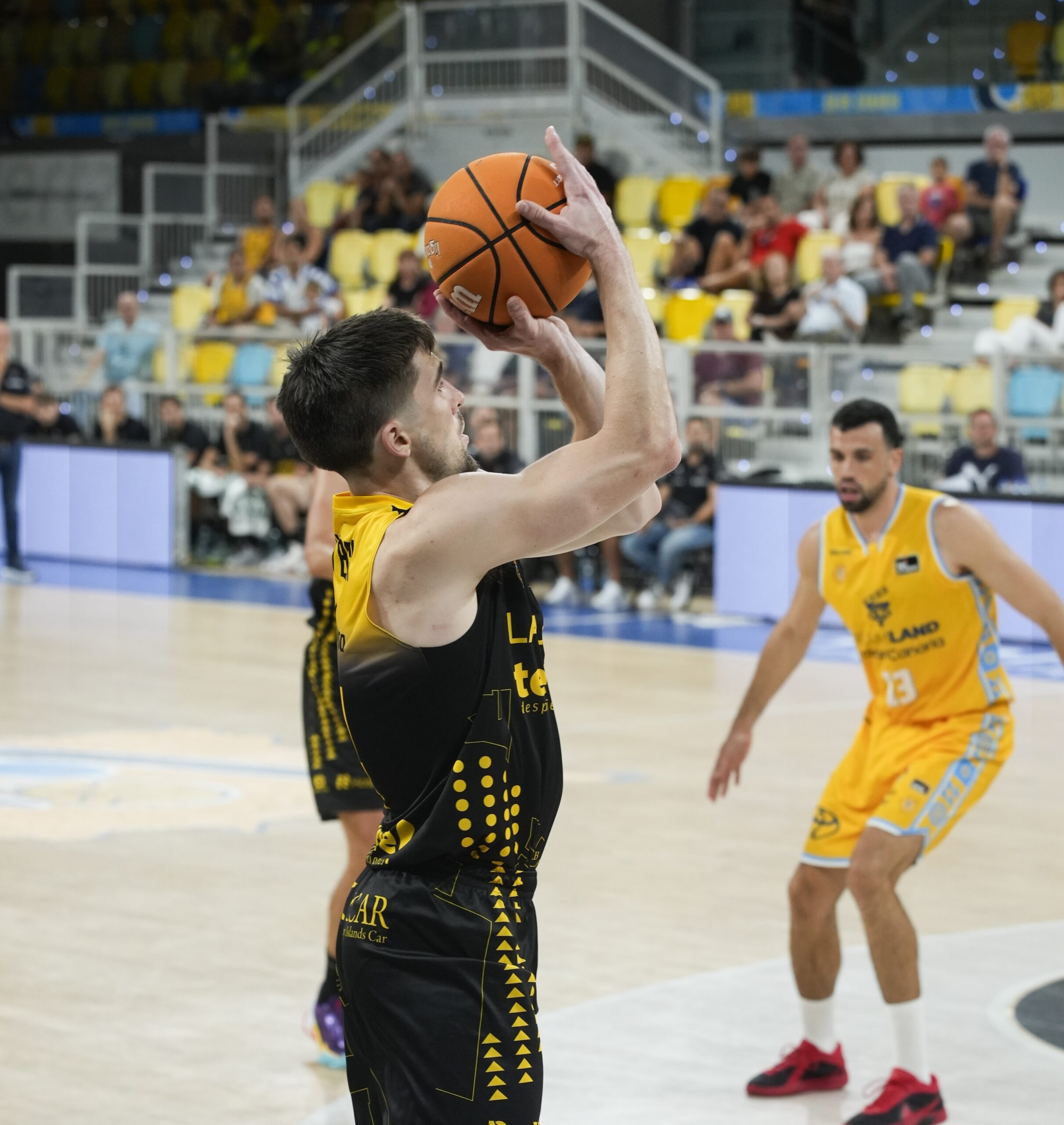 El Canarias mandó en el marcador desde el mismo salto inicial, con un primer cuarto en el que brilló la solidez defensiva, así como el acierto exterior, con triples de Van Beck para cobrar las primeras diferencias en el electrónico.
