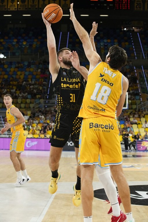 Se alcanzó el descanso con el marcador del Gran Canaria Arena indicando un +12 (33-45), tras triplazo de Tim Abromaitis coincidiendo con el crono y sabiendo sacar provecho, tras tiempo muerto de Txus, del último segundo de posesión.