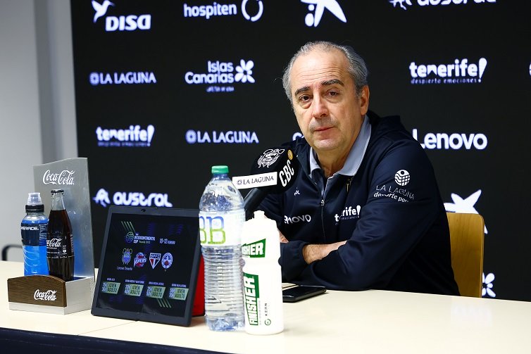 El entrenador del Lenovo Tenerife, Txus Vidorreta, abordó en sala de prensa la visita de este sábado al «Fernando Martín», donde espera un Fuenlabrada «herido» y con su tercer cambio en el banquillo.