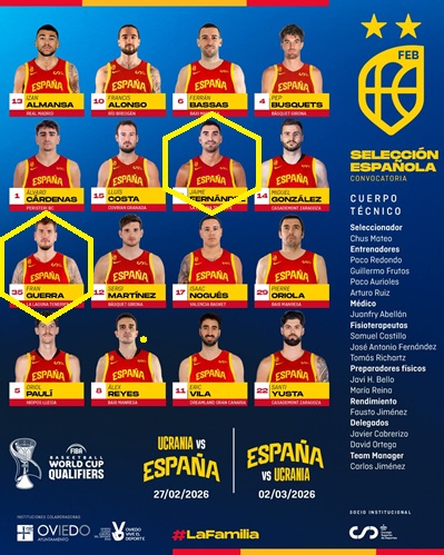 El equipo iniciará la concentración el próximo lunes 23 de febrero, en Guadalajara, para preparar el primer partido contra Ucrania, que se disputará el viernes 27 en la localidad de Riga (Letonia) a las 14:00 horas.