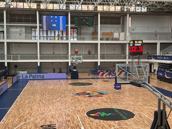El otro enclave que va a acoger partidos de esta edición del FIBA U18 Women’s EuroBasket es el Pabellón Severo Rodríguez de Los Llanos de Aridane, que también se ha actualizado con sello Mondo aprovechando esta importante cita. El recinto, que ya contaba con un marcador de la compañía, estrena para la ocasión una gran pantalla led Mondo Smart Systems de 15 metros cuadrados y cubos de posesión led de cuatro caras, así como consolas FIBA. Además, la superficie de juego de madera se ha tratado con barniz FIBA Nivel 2.