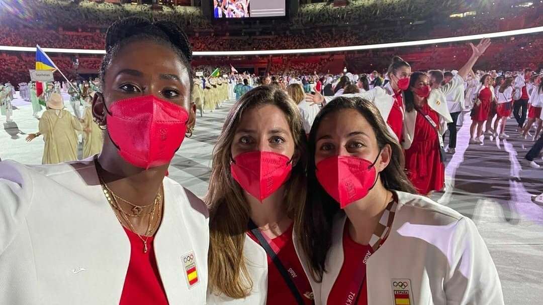 El tinerfeño SERGIO RODRÍGUEZ y las grancanarias LEO RODÍGUEZ, MAITE CAZORLA y ASTOU NDOUR han desfilado con los demás componentes de la expedición española que toma parte en los Juegos Olímpicos Pekin 2020.