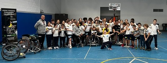 En la tarde de ayer viernes, coincidiendo con el #DiaInternacionalSilladeRuedas, una representación del equipo de Primera División de Baloncesto en Silla de Ruedas ADEIN TENERIFE FUNDACIÓN CB CANARIAS ha tenido ocasión de dar a conocer esta disciplina deportiva a un grupo de alumnos y alumnas del Colegio Mayco, en La Laguna.