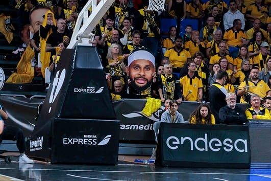 Sin embargo, la «Grada de Animación» se encargó de que al menos estuviera el cartón con la cabeza de Patrick Mills, como se aprecia en la foto de Emilio Cobos.