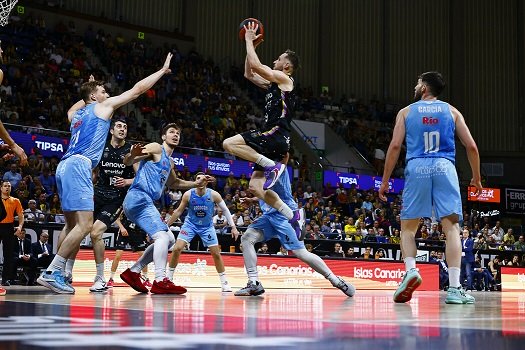 Se estrena desde el 6,75 Dakota Mathias (83-64). Recuperación defensiva, contraataque y mate espectacular de Leandro Bolmaro que saca el adicional.