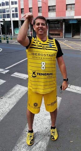 Forma parte de la Peña Frente Los Pollos Amarillos y es de los fijos en los desplazamientos de la afición con el CB Canarias.