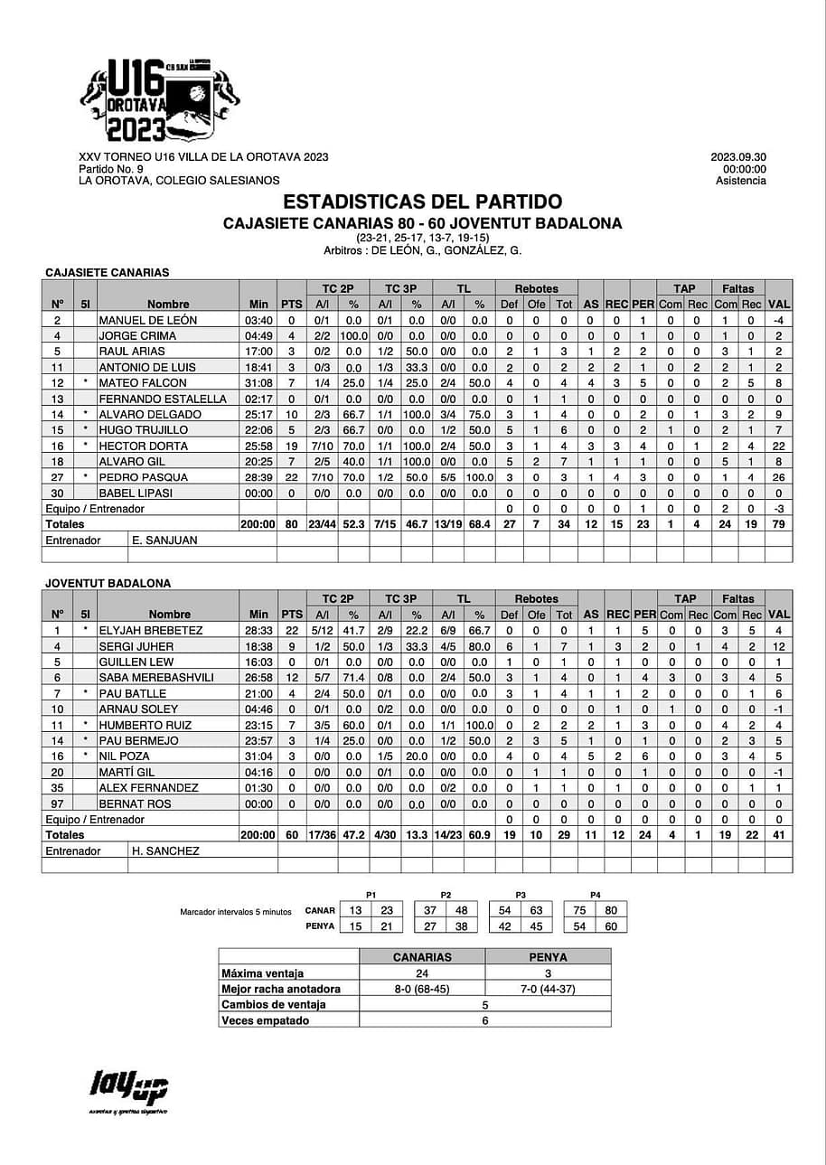 Cabe destacar el +26 de valoración de Pedro Pasqua, autor de 22 puntos, así como el +22 de Héctor Dorta, que ayudó con sus 19 tantos.
