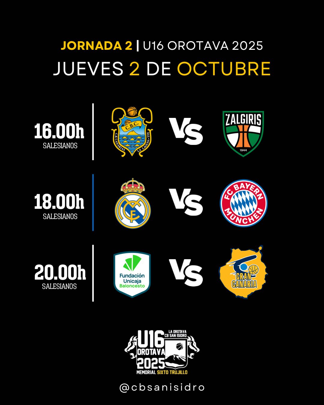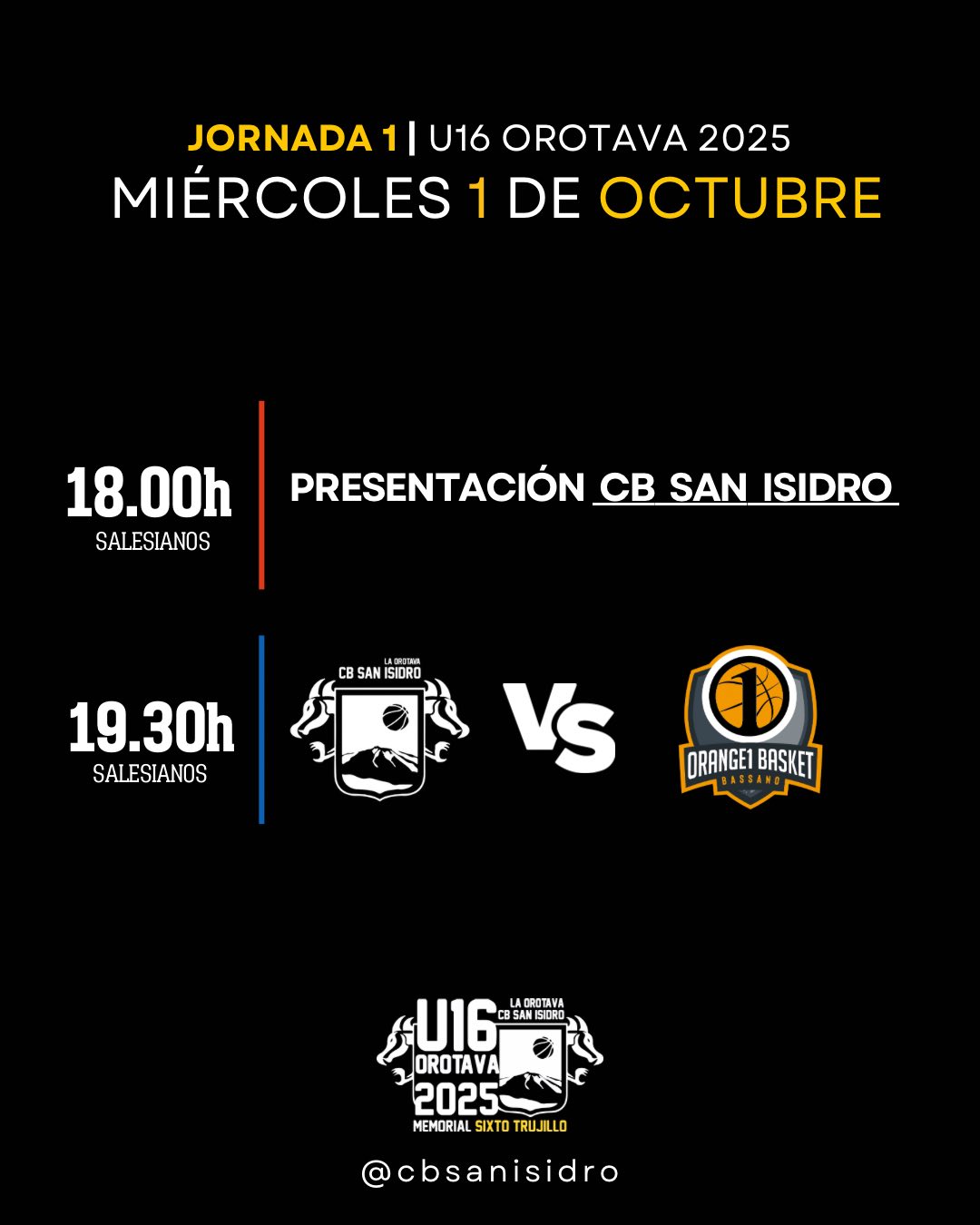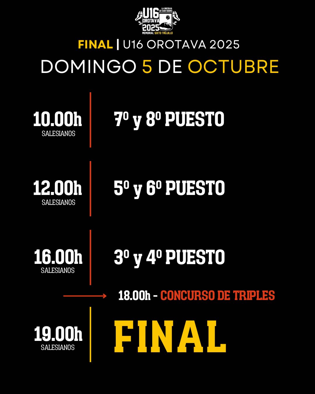 Del 1 al 5 de octubre de 2025, el Colegio Salesianos La Orotava acogerá el XXVII Torneo Internacional de Baloncesto U16 – Memorial Sixto Trujillo.